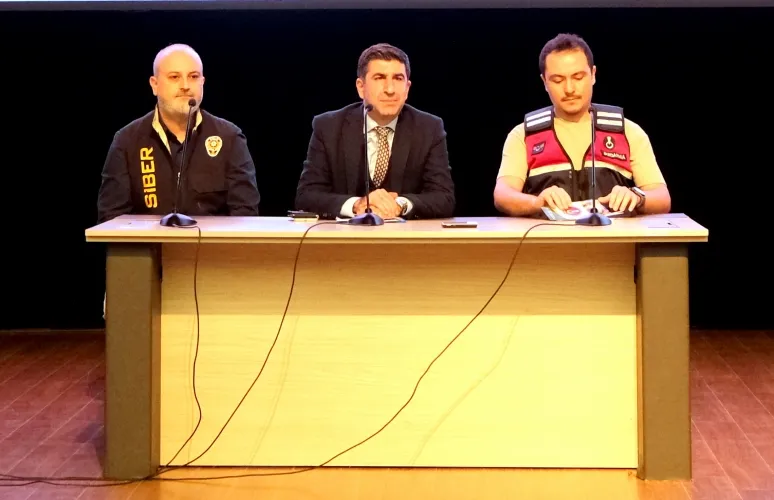 Hukuki değerlendirmelerin ardından, suçla mücadelenin saha ve operasyon boyutu aktarıldı. İl Jandarma Komutanlığı Siber Suçlarla Mücadele Şube Müdürlüğü’nden Jandarma Astsubay Burhan Demir ile İl Emniyet Müdürlüğü Siber Suçlarla Mücadele Şube Müdürlüğü’nden Polis Memuru Ahmet Duman, güncel yöntemler üzerine bir sunum gerçekleştirdi. Siber uzmanlar, dolandırıcıların kullandığı yeni nesil teknikleri ve bu tuzaklara karşı alınabilecek bireysel güvenlik önlemlerini gerçek vakalardan örneklerle açıkladı. Dijital hijyenin ve kişisel veri güvenliğinin önemine dikkat çekilen bu bölümde, siber suçlarla mücadelenin teknolojik boyutu katılımcılara detaylıca aktarıldı.