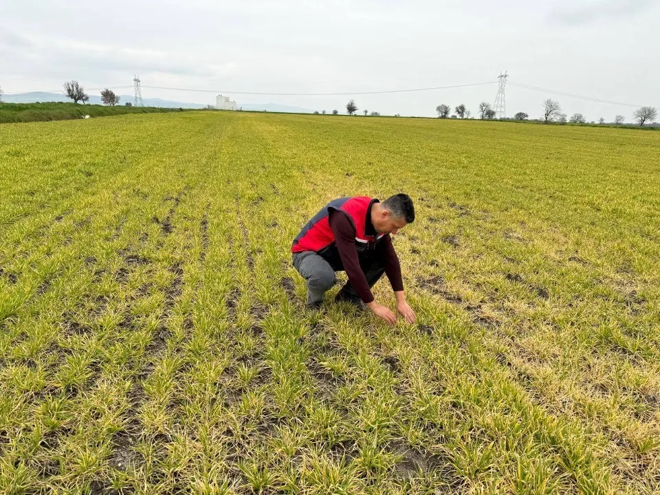Biga’da etkili olan aşırı yağışlar arpa tarlalarında sararma ve gelişim geriliğine yol açtı.