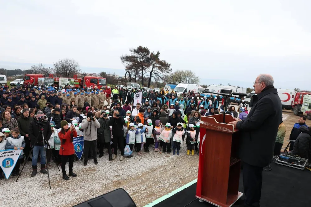 21 Mart Dünya Ormancılık Günü ve Orman Haftası, Çanakkale’de büyük bir coşku ve doğa sevgisiyle kutlandı. "Türkiye’nin Gücü: ORMAN" temasıyla düzenlenen etkinliklerde, yeşil bir gelecek için eş zamanlı olarak binlerce fidan toprakla buluşturuldu. Etkinliğin ana merkezi Vali Doç. Dr. Ömer Toraman’ın teşrifleriyle gerçekleştirildi. Törende konuşan Vali Toraman, ormanların bir ülkenin en büyük zenginliği ve stratejik gücü olduğunu vurguladı. Toraman, fidan dikiminin sadece bugüne değil, gelecek nesillere bırakılacak en değerli miras olduğunu ifade ederek ilk can suyunu verdi. Kutlamalar kapsamında yalnızca ana tören alanında değil, şehrin dört bir yanında hummalı bir çalışma yürütüldü.