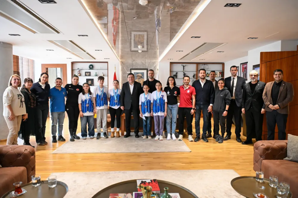 2026 Türkiye Açık Su Yüzme Kış Şampiyonası (14+) ile 11, 12 ve 13 Yaş Gelişim Grubu Yarışmaları’nda kulaç atan Çanakkale Belediyesporlu yüzücüler, elde ettikleri tarihi başarıların ardından kente döndü. Şampiyonada gösterdikleri üstün performansla dikkatleri üzerine çeken genç sporcular Çanakkale Belediyespor Kulübü Başkanı Akın Yalman, kulüp yönetimi, Baş Antrenör Nehir Çakır, A Takım Antrenörü Nursena Ortaç, Altyapı Sorumlu Antrenörleri Toprak Akkaya ve Nail Ülkü birlikte Çanakkale Belediye Başkanı Muharrem Erkek’e nezaket ziyaretinde bulundu.