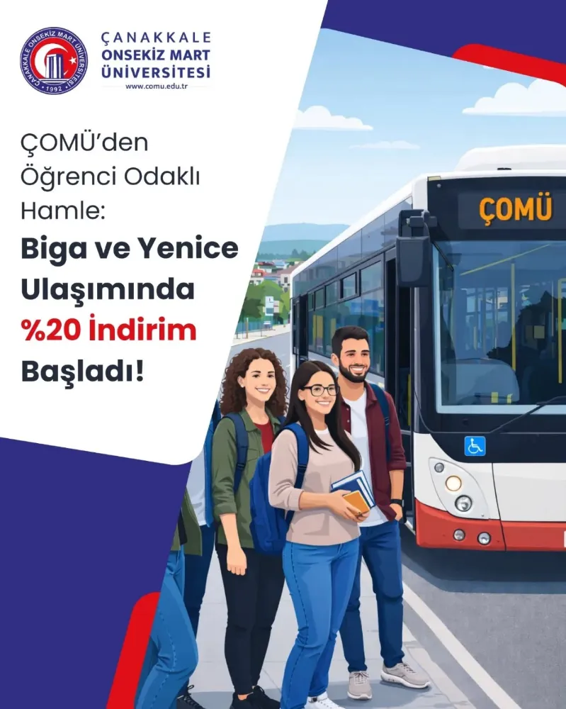 Çanakkale Onsekiz Mart Üniversitesi (ÇOMÜ), öğrenci dostu kampüs vizyonu doğrultusunda dev bir adım daha attı. Yapılan yeni anlaşmayla birlikte Biga ve Yenice ilçelerinde eğitim gören öğrenciler, toplu taşıma hizmetlerinden %20 indirimli yararlanacak.