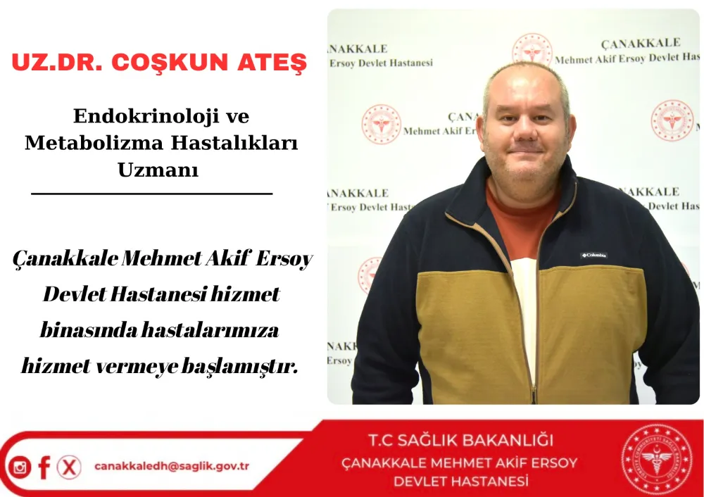 Endokrinoloji ve Metabolizma Hastalıkları Uzmanı Dr. Coşkun Ateş Mehmet Akif Ersoy Devlet Hastanesinde göreve başladı.
