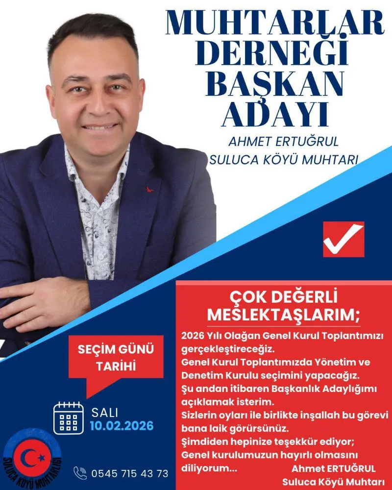 Yerel yönetimlerin temel taşı olan muhtarlar, dernek yönetimini belirlemek üzere sandığa gitmeye hazırlanıyor. Suluca Köyü’nde hayata geçirdiği projeler ve muhtarlar arasındaki koordinasyonu güçlendirme vizyonuyla öne çıkan Suluca Köyü Muhtarı Ahmet Ertuğrul meslektaşlarının desteğiyle başkanlık yarışına girdiğini belirtti. Adaylık açıklaması sonrası muhtarlarla bir araya gelen Suluca Muhtarı, derneğin daha aktif bir yapıya kavuşması gerektiğini vurguladı. Lapseki Muhtarlar Derneği kongresi 10 Şubat tarihinde yapılacak. Suluca Köyü Muhtarı'nın adaylığı, ilçe genelindeki diğer muhtarlar arasında da ilgiyle karşılanırken, seçim sürecinin oldukça demokratik ve heyecanlı geçeceği öngörülüyor.