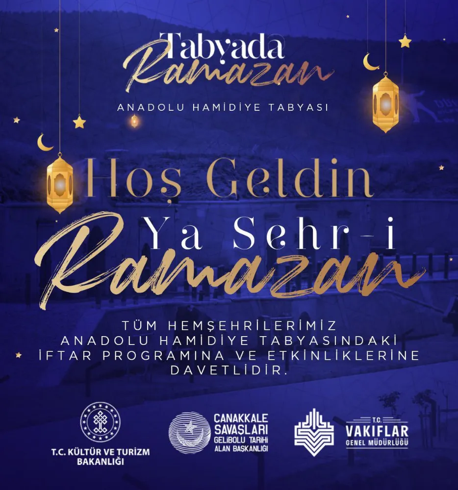 Çanakkale Savaşları Gelibolu Tarihi Alan Başkanlığı ve Vakıflar Genel Müdürlüğü ortaklığında, Anadolu Hamidiye Tabyalarında 500 kişiye iftar yemeği ve etkinlikler düzenlenecek. Tabyalarda düzenlenen basın toplantısında etkinlik ile ilgili bilgiler veren Çanakkale Savaşları Gelibolu Tarihi Alan Başkanı İsmail Kaşdemir şunları söyledi: “Ramazan ayı paylaşmak, aynı sofra etrafında buluşmaktır. Bu yıl Çanakkale’de Ramazan güzellikleriyle gelecek. Ramazan süresince her akşam 500 vatandaşımıza, Vakıflar Müdürlüğü ile iftar yemeği vereceğiz. İftar programından sonra çocuklar için eğlenceler düzenlenecek. Ayrıca çocuklara, pamuk helva, macun, patlamış mısır da ikram edilecek. Halkımızı iftar yemeğine ve etkinliklerimize davet ediyoruz. Ramazan ayının bütün insanlığa hayırlar getirmesini diliyorum.” Etkinliklerin yalnızca iftar yemeğinden ibaret olmadığını belirten Vakıflar Balıkesir Bölge Müdürü Mikail Akıllı ise konuşmasında Ramazan ayının ruhunu yakalayabilmek için geleneksel etkinliklere de yer verileceğini belirtti. Akıllı “İftar sofralarımızda vatandaşlarımız masalara oturacak, sıcak yemek ikramını bizzat biz yapacağız. İftardan sonra çocuklar için etkinlik alanları kurulacak. Osmanlı dönemindeki Ramazan geleneklerini Anadolu Hamidiye Tabyaları’nda yaşatacağız” diye konuştu.